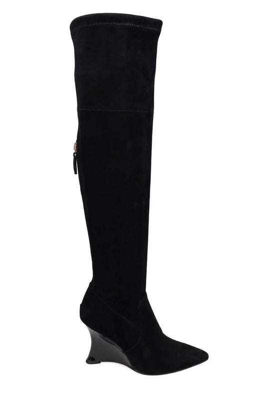 Natori Natsu Stretch Suede Over the Knee Wedge Boot - Black