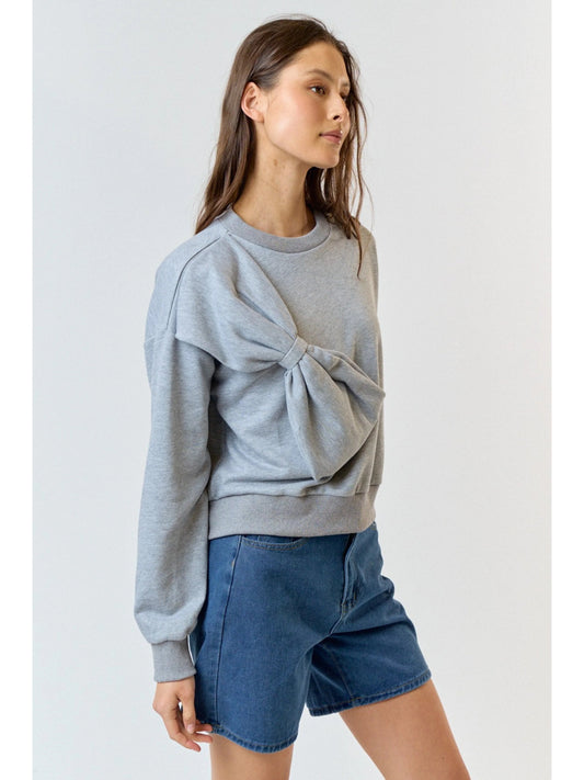 Ruby & Jenna Women's Crew Neck French Terry Top With Bow