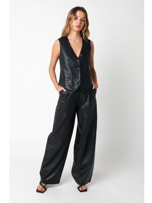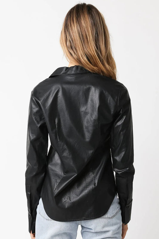Ruby & Jenna Women's Vegan Leather Button Down Top
