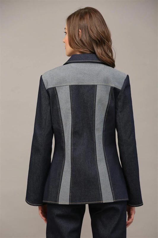 Ruby & Jenna Women's Welt Pocket Two Tone Denim Blazer