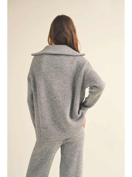 Ruby & Jenna Women's Waffle Pattern Half Zip Sweater