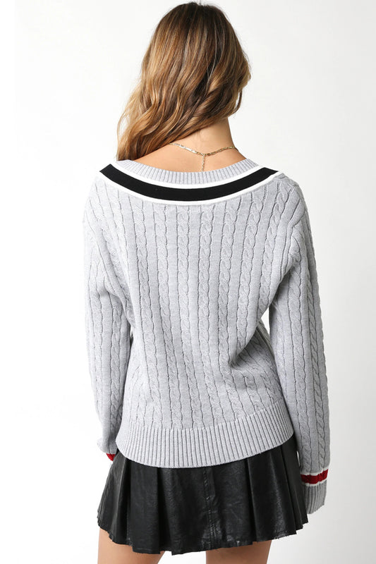 Ruby & Jenna Women's Varsity Cable Knit Sweater