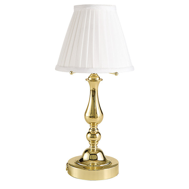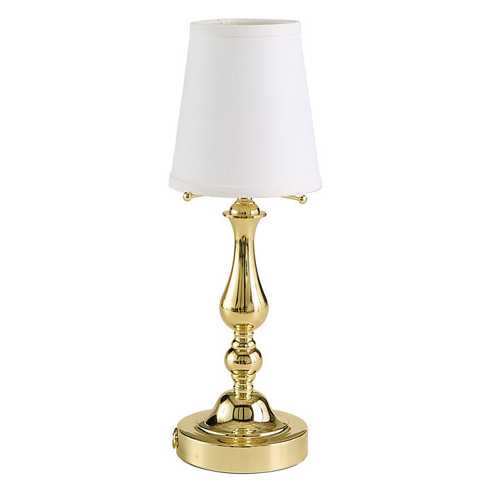 This petite, go-anywhere accent lamp offers a light-filled stage for showing off your favorite chandelier shade. The cordless, rechargeable candlestick base has a frosted LED disc light at the top and four prongs to support a regular or tall chandelier shade. The clever design makes it beautifully easy to swap out and coordinate shades with your table decor. Pick your favorite shade from our fashion-forward online collection.