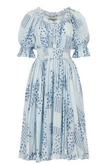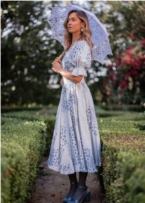 The Alice Dress from our Tea Time Collection is a versatile and stylish piece for any occasion. Features a delicate blue floral print on a soft airy fabric, complemented by a smocked waist and ruffle elastic sleeves for a flattering, feminine silhouette. Perfect for tea parties, garden strolls, or any occasion that calls for a touch of charm.