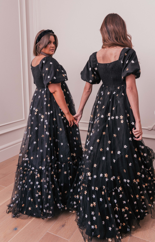 This gown is perfect for any special occasion. Our signature elastic puff sleeve and square neckline create a feminine look. Features a smocked back and hidden back zipper for an easy fit. The maxi silhouette will be comfortable to dance the night away in. Fully lined. This dress is sure to be a crowd favorite.