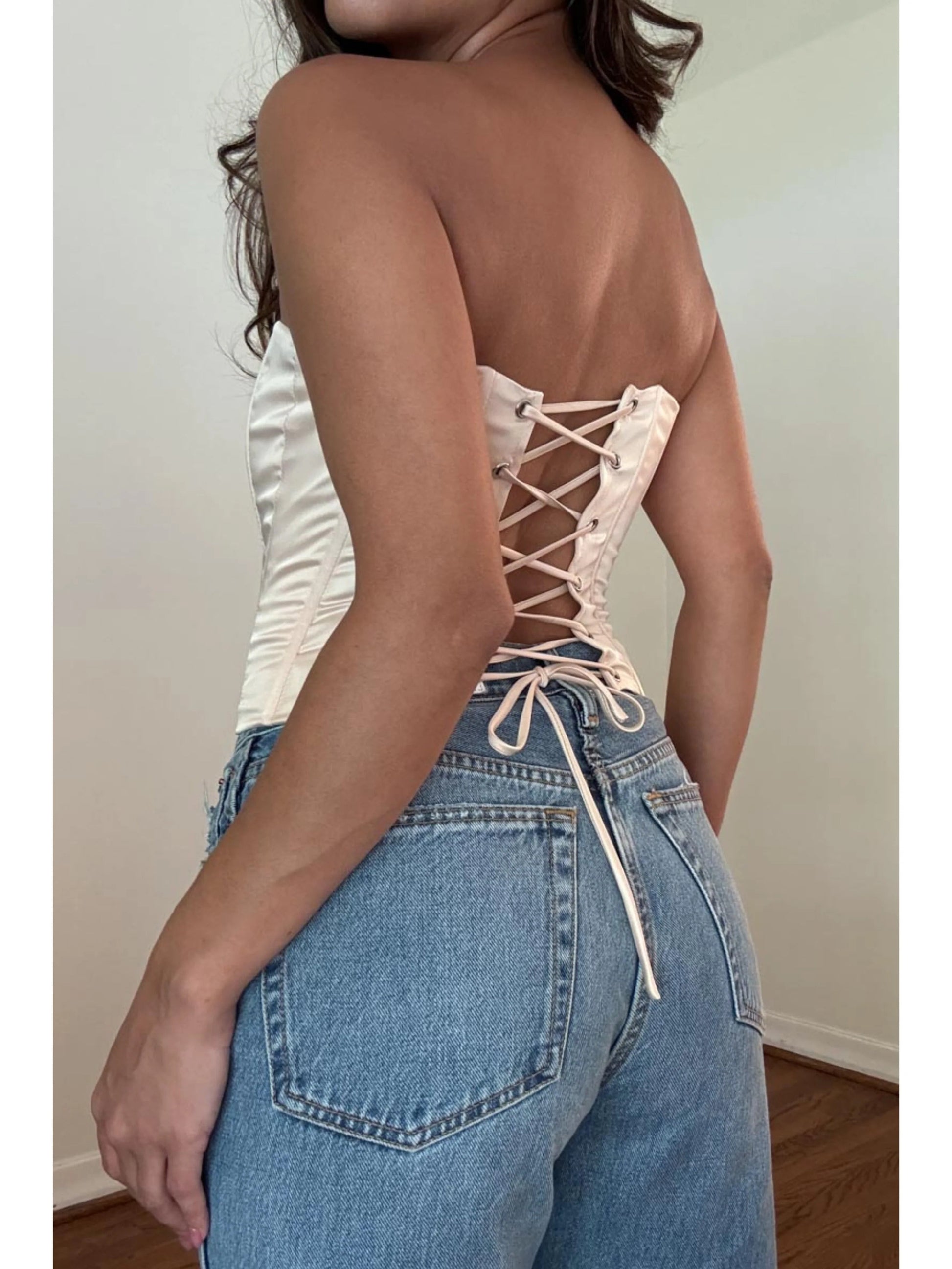 Ruby & Jenna Women's Satin Back Lace Up Corset