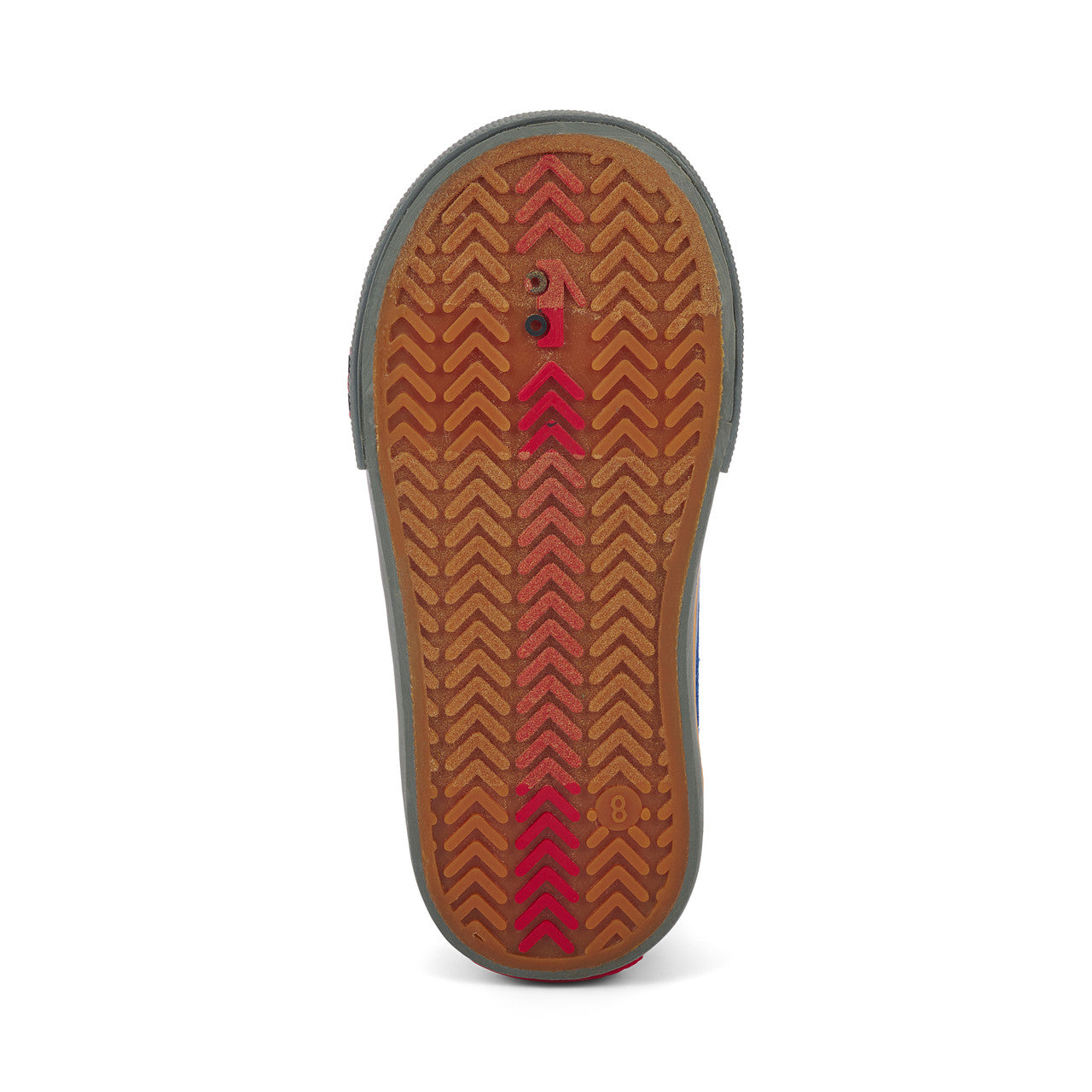 Natural rubber outsole with herringbone lug pattern provides great traction for play.