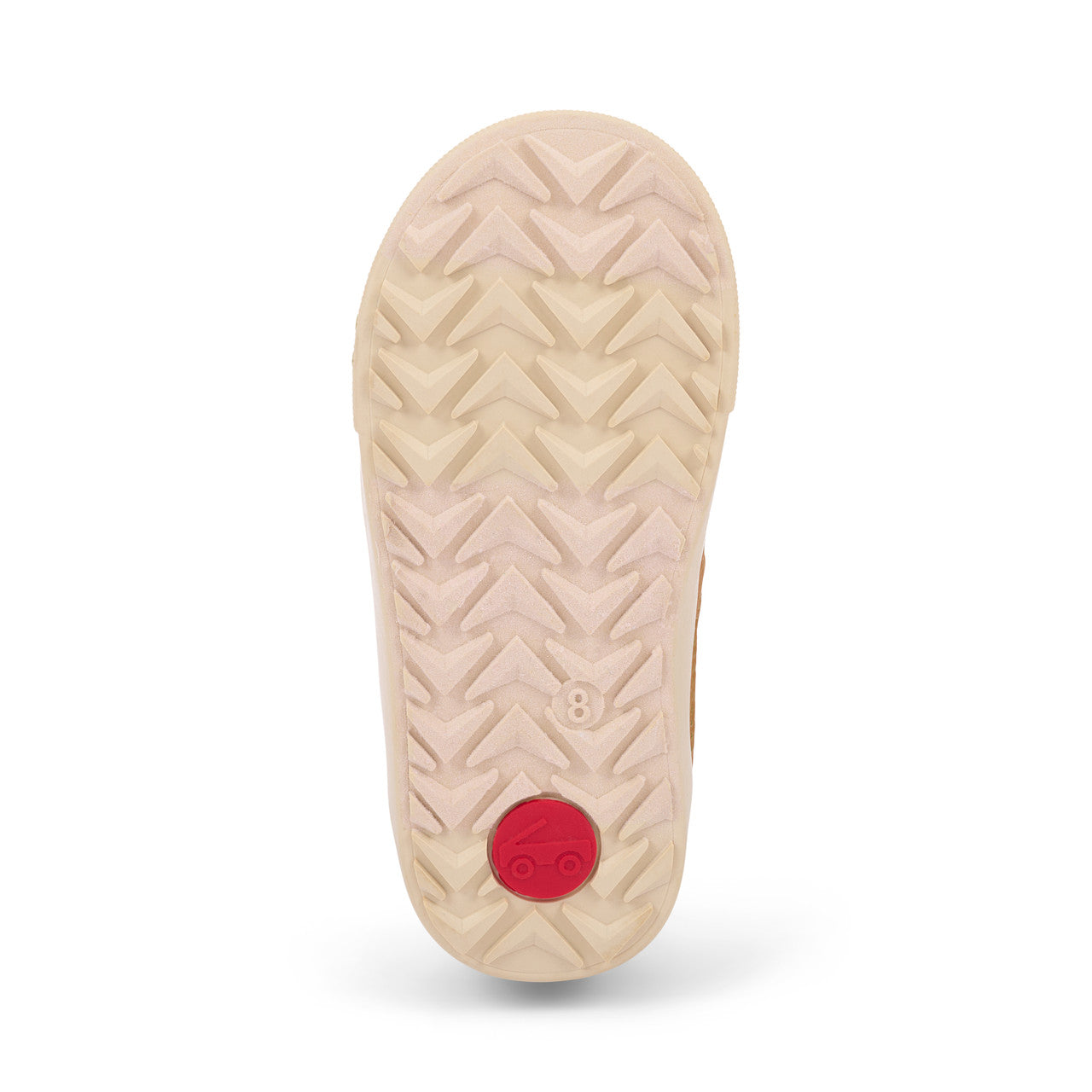 Natural rubber outsole with herringbone lug pattern provides great traction for play.