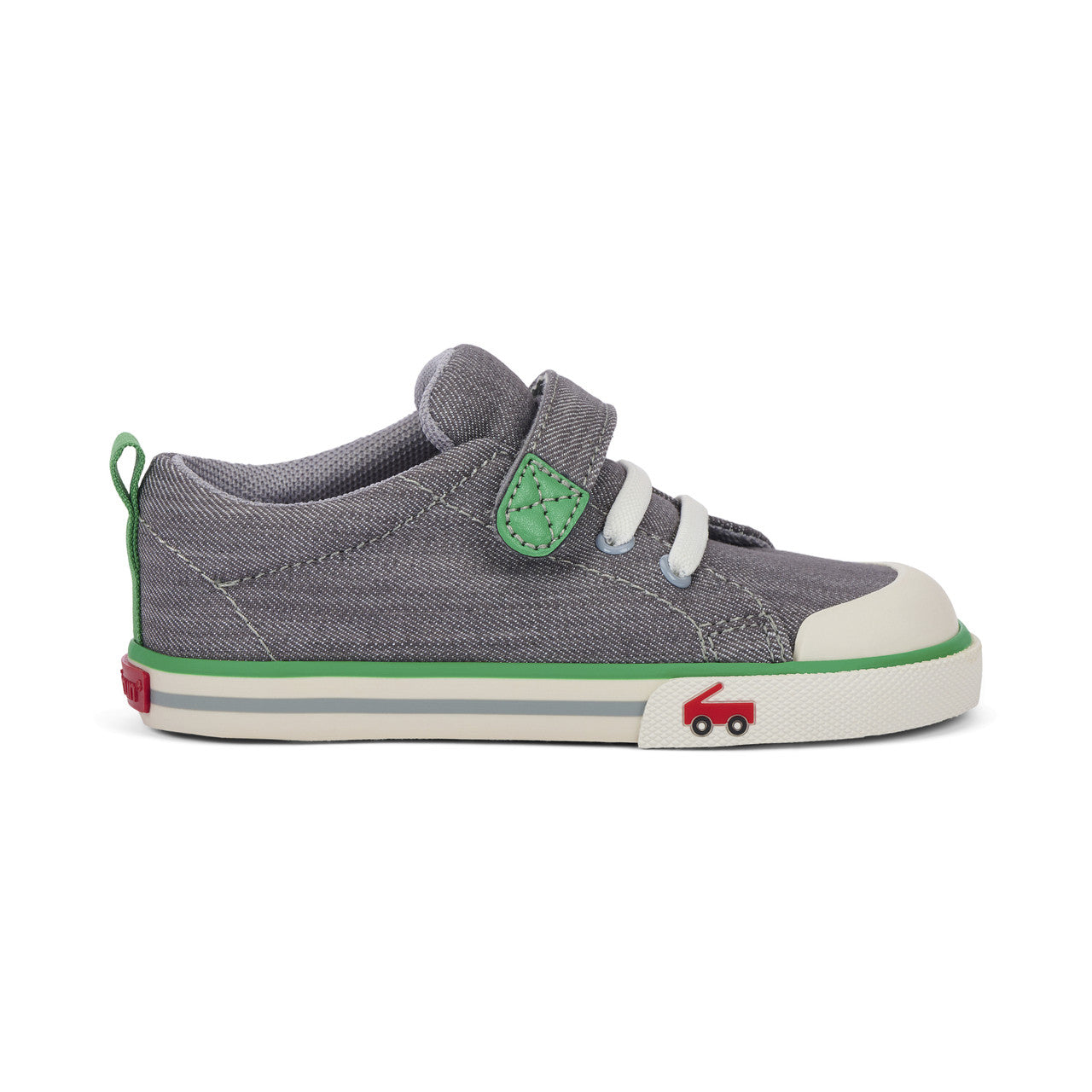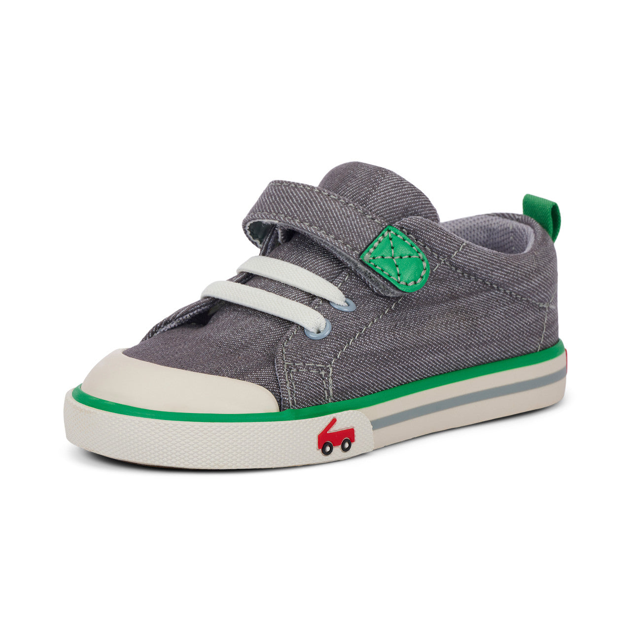 Playground days have met their match with our flexible, protective, and oh-so comfy Stevie sneaker. Designed in gray denim and green accents with a contoured footbed that feels like it was made just for their feet, this pair is ready to bring the fun.