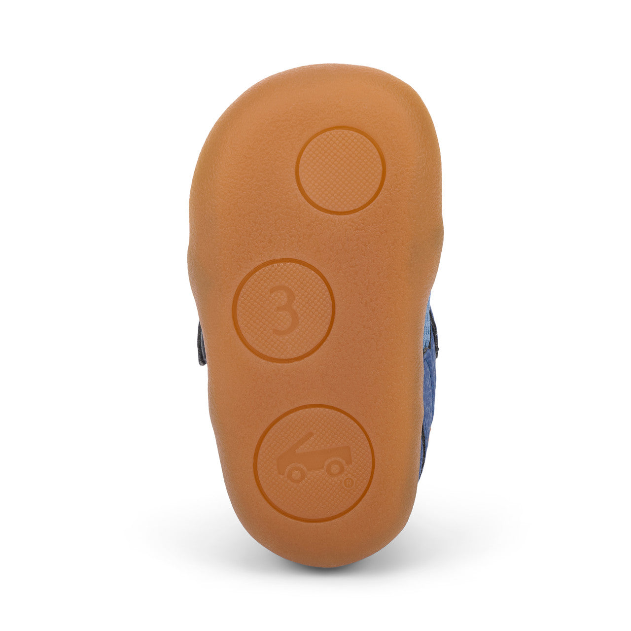 Blue mesh textile upper with nubuck-feel overlays and TPU toe cap to protect little toes.