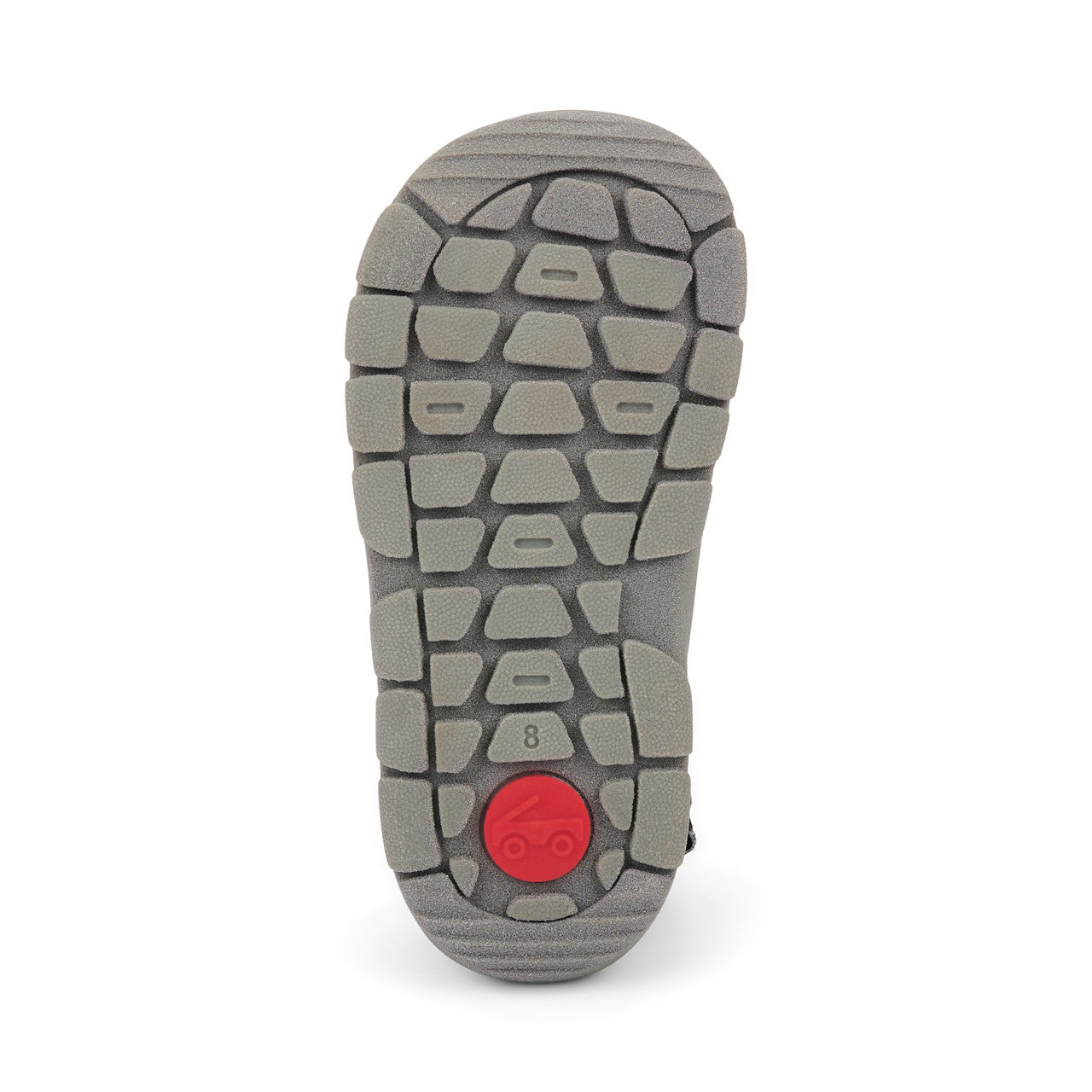 Recycled TPR full rubber outsole is deep lug pattern is slip resistant with traction patterns for extra grip