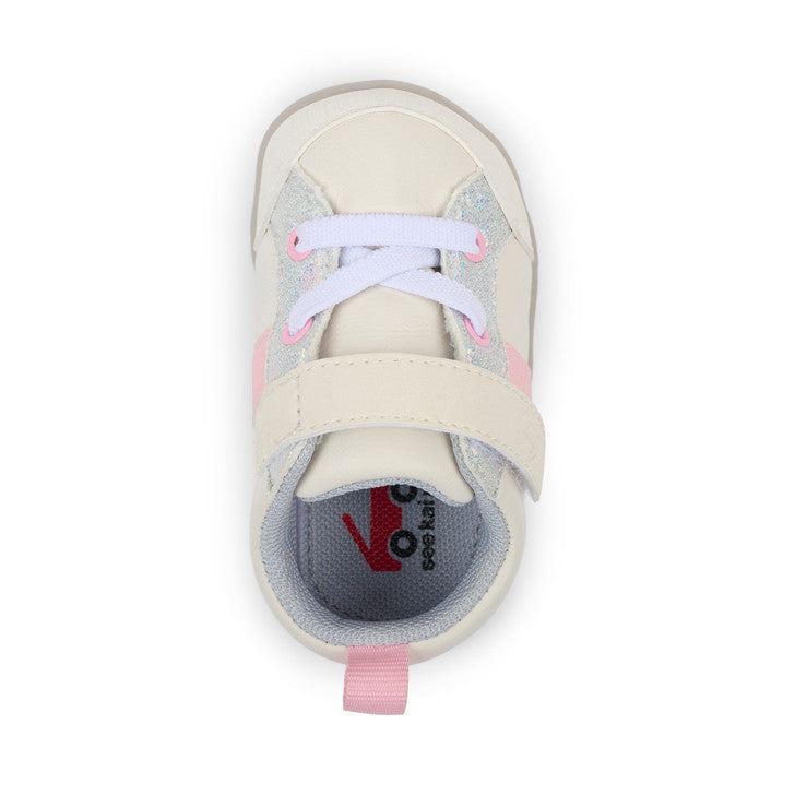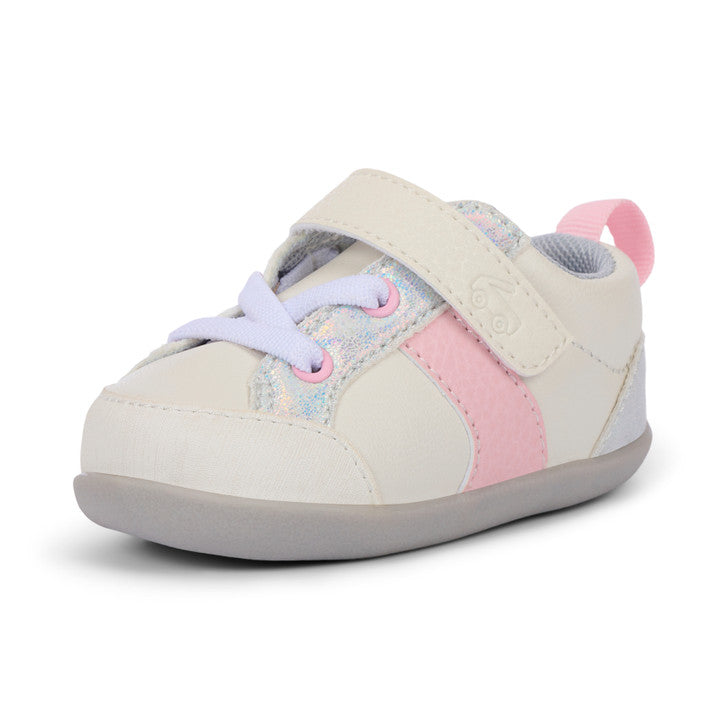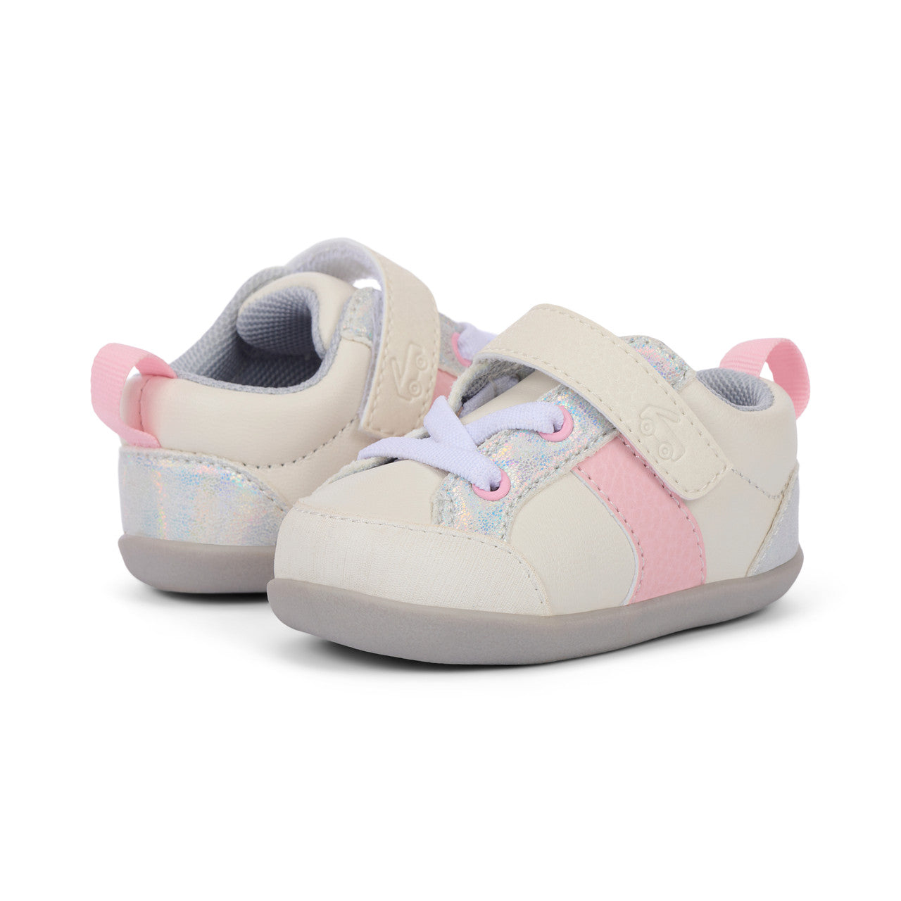 Retro inspired yet right on trend, our Connor court-inspired first walker is ready for fun. Feet stay fresh on the inside and protected on the outside thanks to recycled mesh lining, an extra durable rubber toe cap, and flexible, durable outsole.