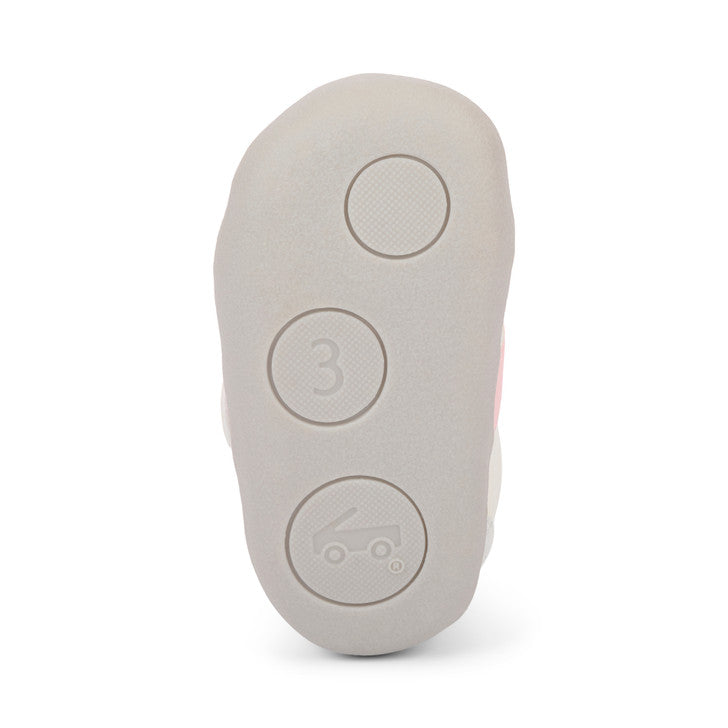 Recycled TPR rubber outsole provides flexibility, traction, and durability for early steps.