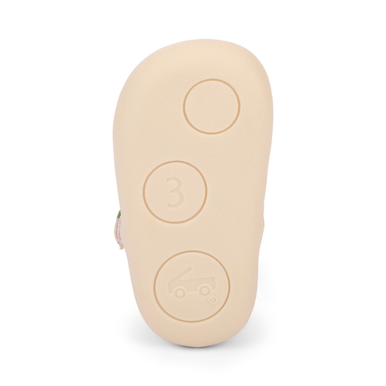 Recycled TPR full rubber outsole provides flexibility, traction, and durability for early steps.