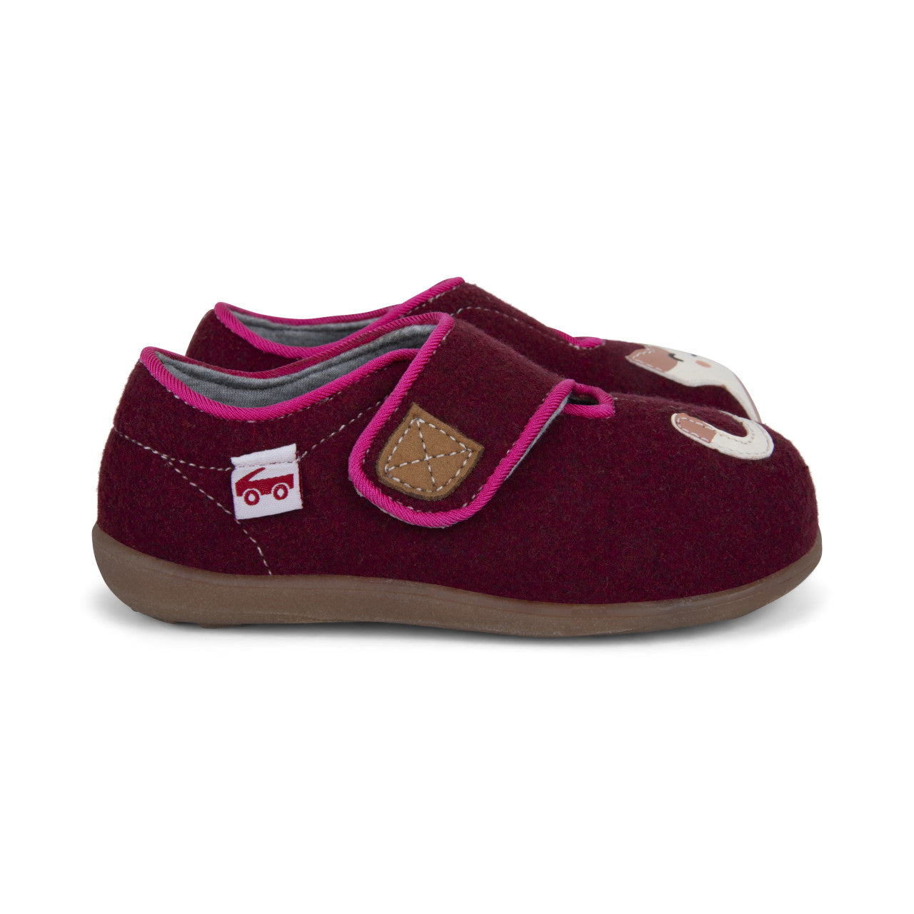 These cozy, easy-on felted wool slippers come in a fun kitty appliqué and soft materials. Toes have plenty of room to wiggle, while the hook and loop strap provides a secure fit.