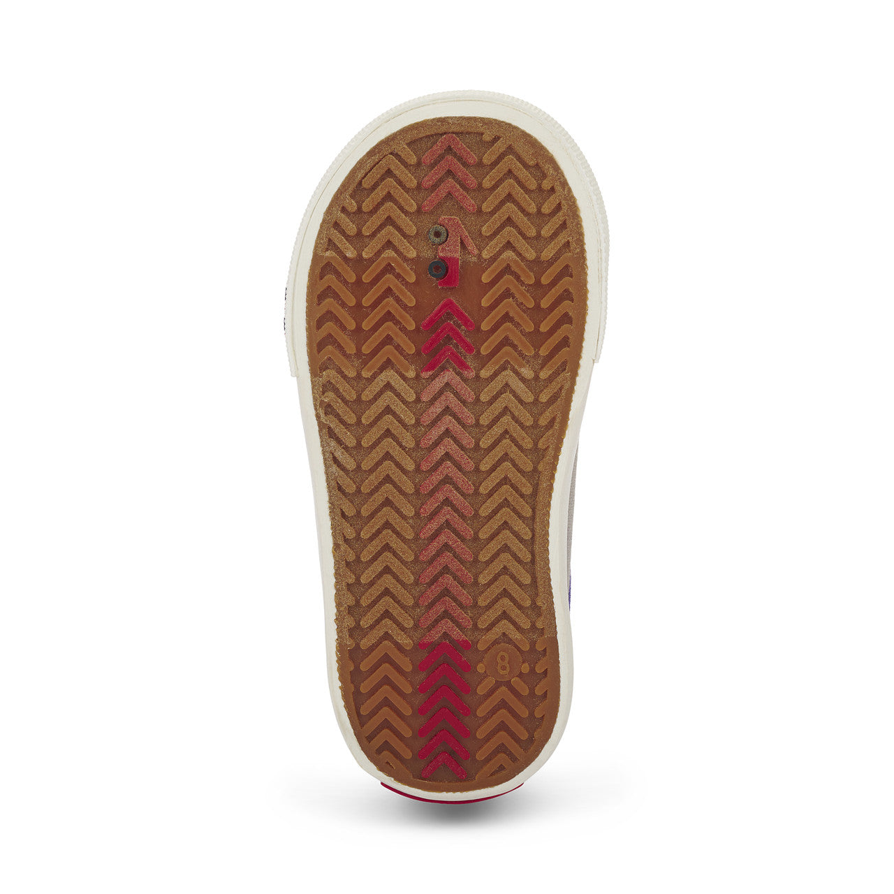 Natural rubber outsole with herringbone lug pattern provides great traction for play.