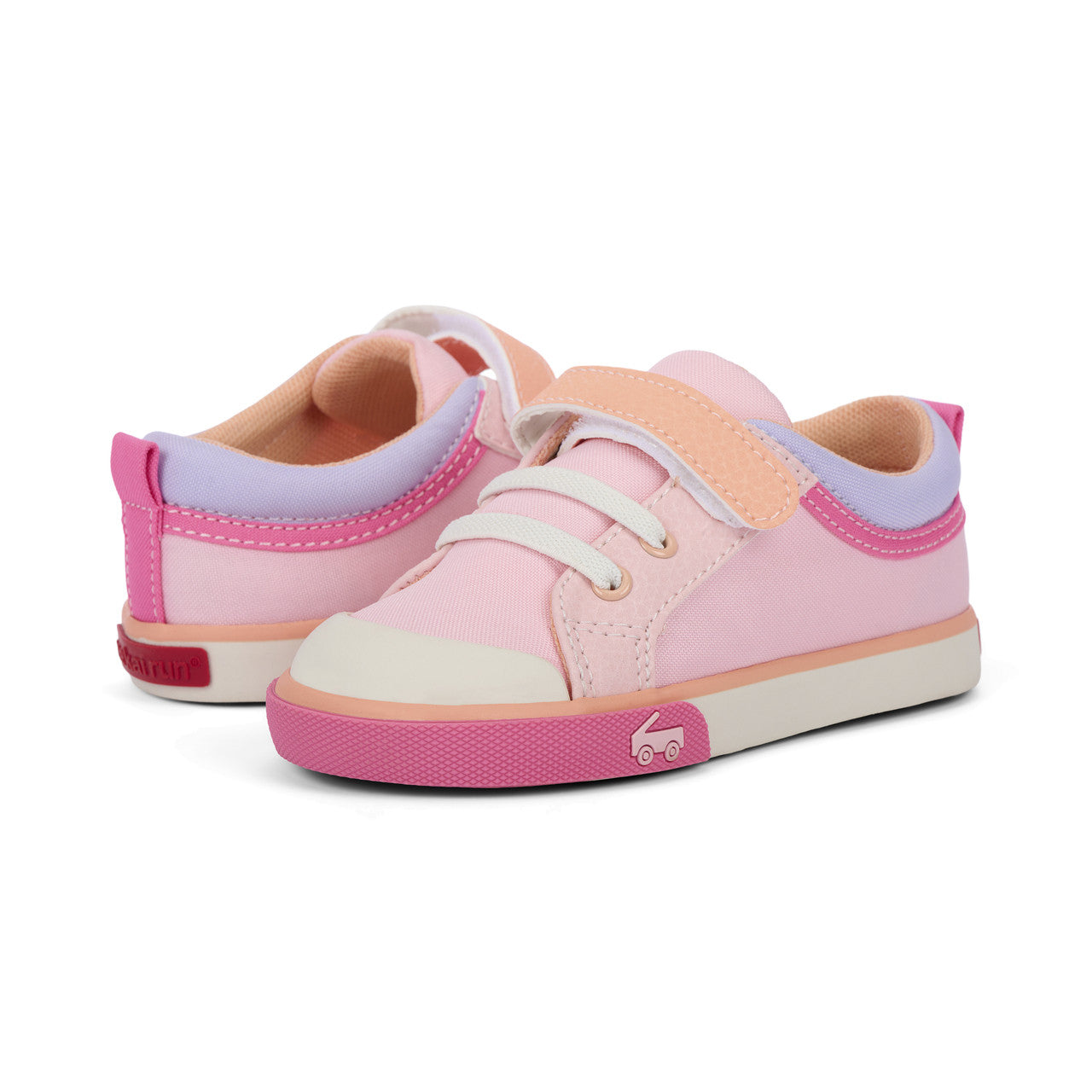 Our web-exclusive denim sneaker just got a fun update with a Light Pink upper with vibrant color pops of orange, purple and pink. The Kristin features a 100% leather-lined, detachable molded footbed for a comfortable foot environment. Plus, a natural rubber toe cap for extra safeguarding.
