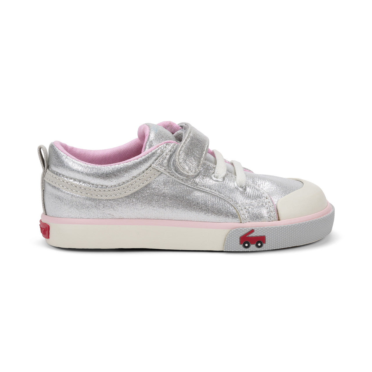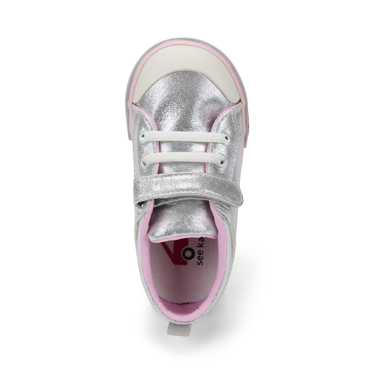 We’ve given this classic, fan-favorite sneaker a colorful seasonal update of silver shimmer with pink accents.  The faux laces and an adjustable hook-and-loop strap make on/off effortless, leaving more time on the playground.