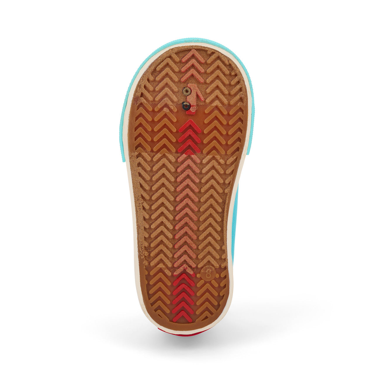 Natural rubber outsole with herringbone lug pattern provides great traction for play.