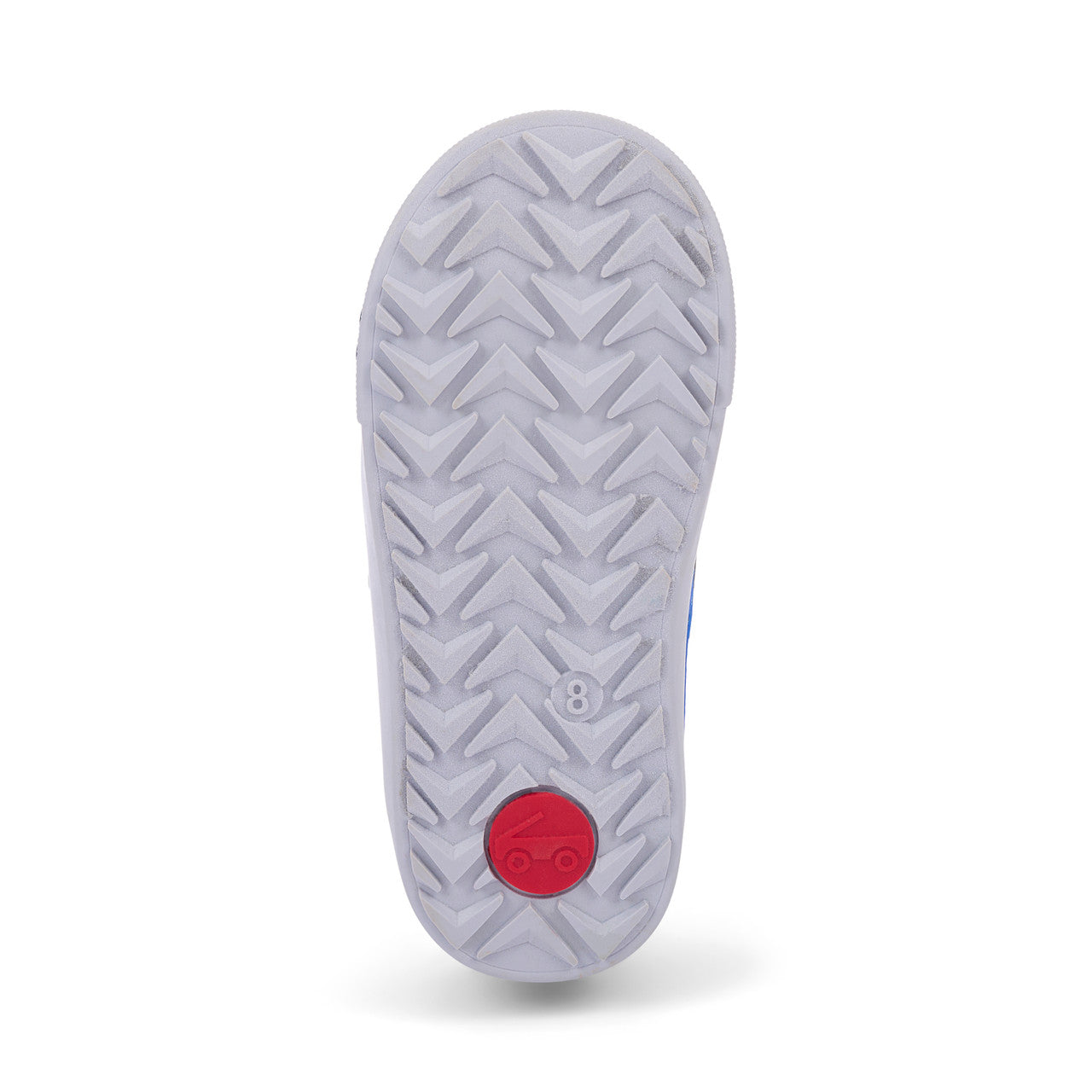 Natural rubber outsole with herringbone lug pattern provides great traction for play.
