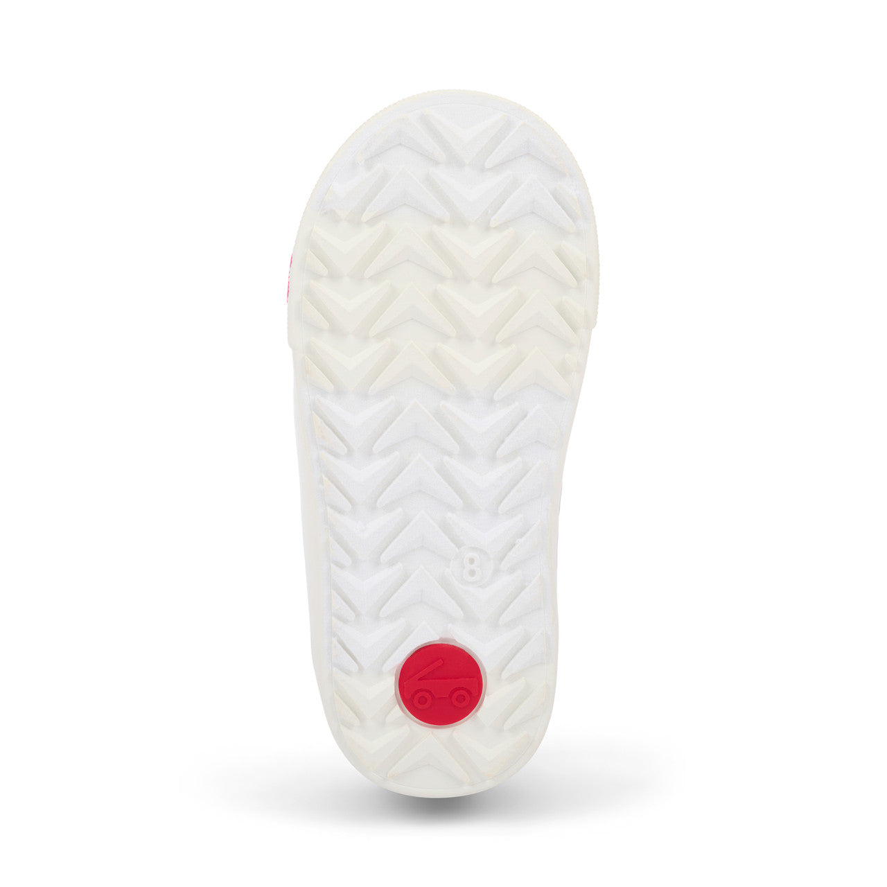 Natural rubber outsole with herringbone lug pattern provides great traction for play.