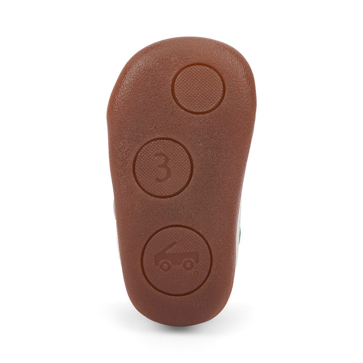 Recycled TPR full rubber outsole provides flexibility, traction, and durability for early steps.