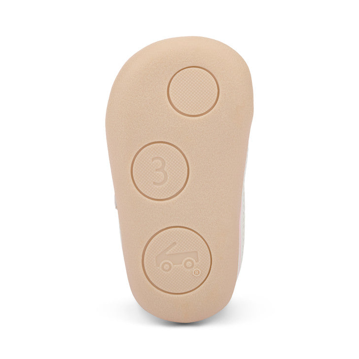 Recycled TPR full rubber outsole provides flexibility, traction, and durability for early steps.