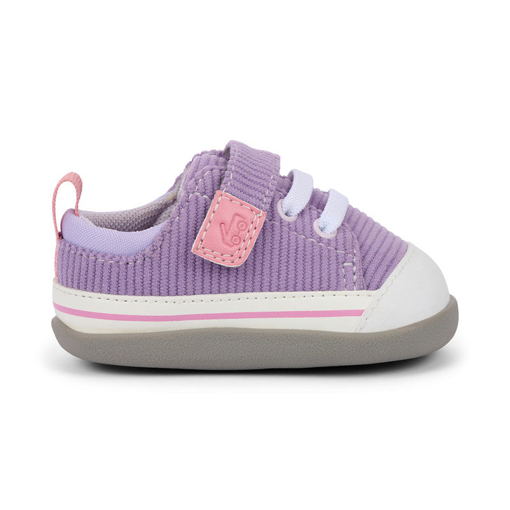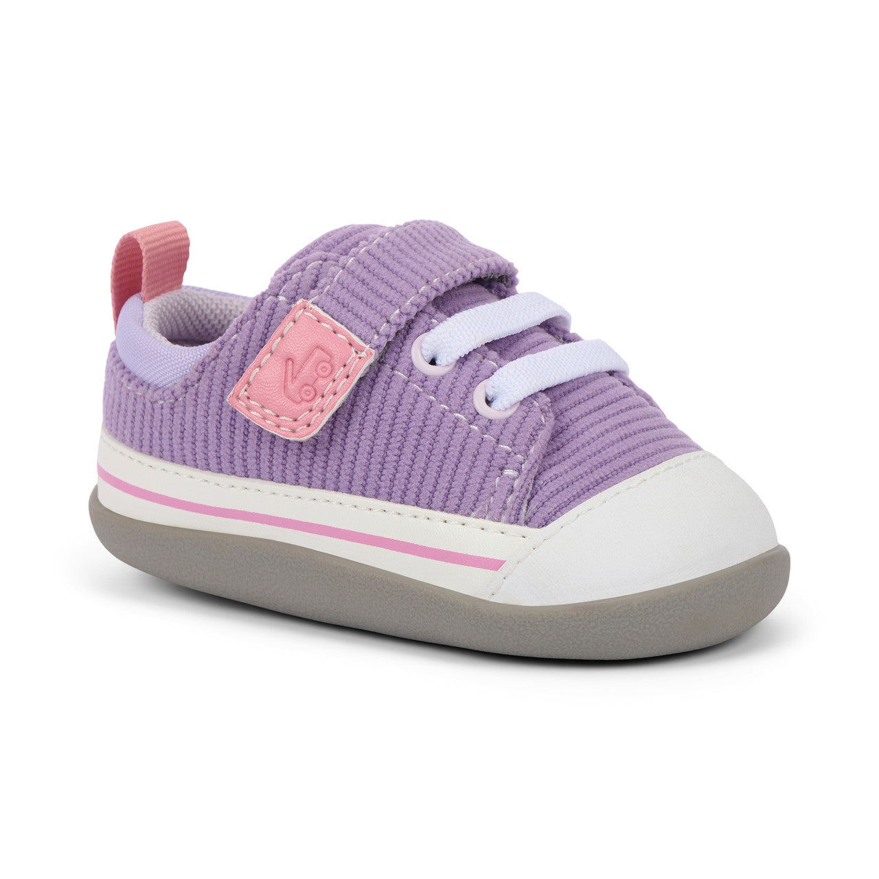 Set the stage for your little one's first steps with our Stevie First Walker, featuring cool light purple corduroy. Expertly designed to be lightweight, flexible and ultra-breathable, it delivers the perfect blend of support and comfort for your tiny explorer.