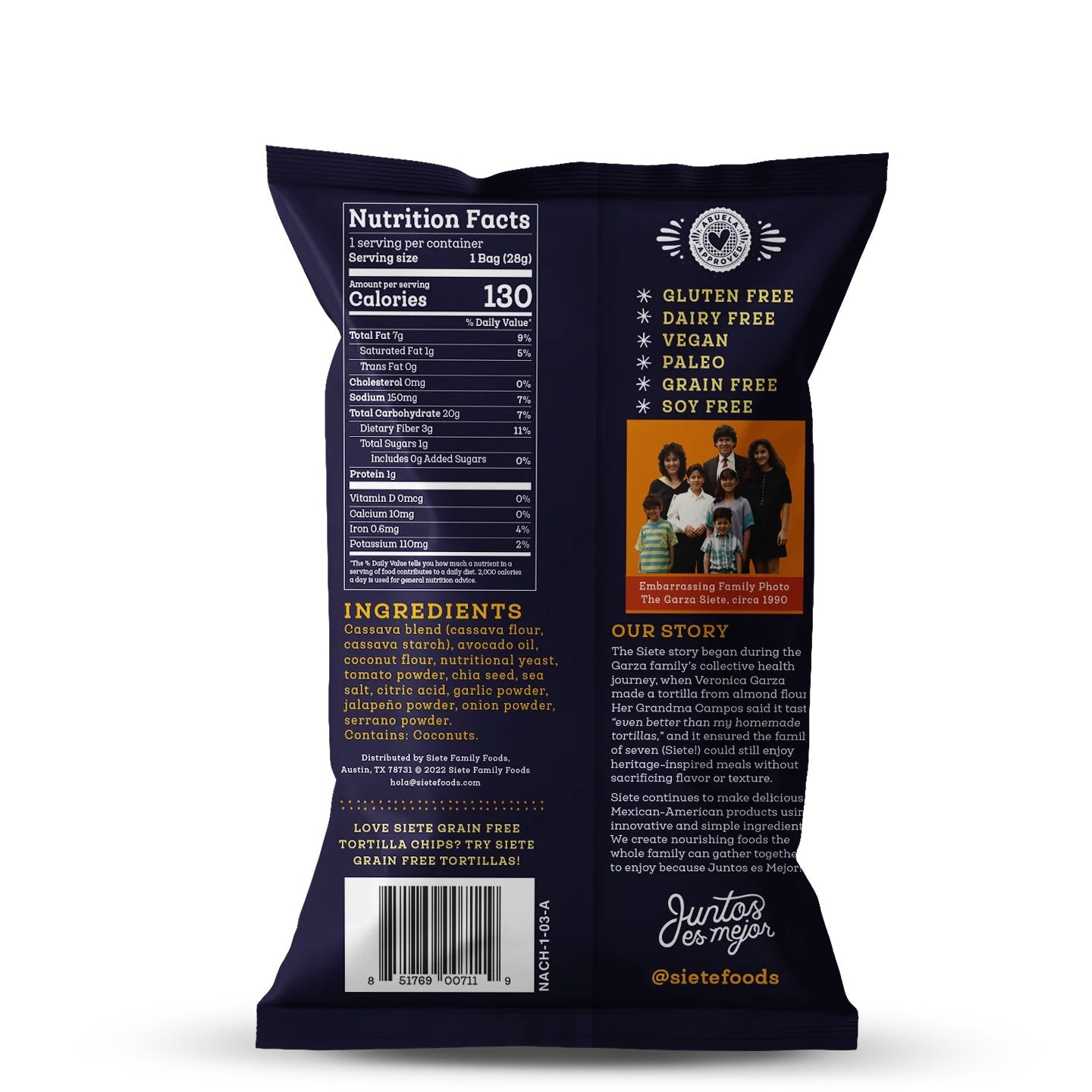 Siete Foods Nacho Grain Free Tortilla Chips 1 oz - 24 bags