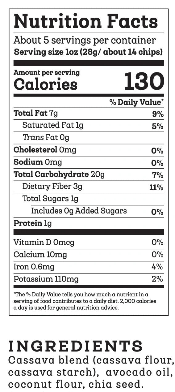 Our no salt chips are for the purists. Perfect for those who want to test the flavor of our masa without any seasoning getting in the way or those who choose to avoid sodium!